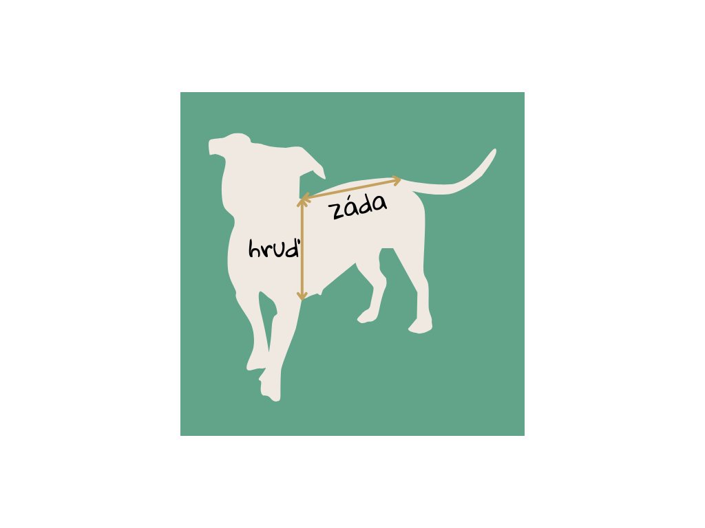 Udáváme vždy dva rozměry: šířka přes hrudník a délka zad.